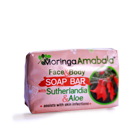 The Moringa Amabala Sutherlandia Saop is formulated to assist in treatment of acne, Shingles, Eczema and psoriasis. This is a pure soap with no fragrance (Perfume). This soap can be used daily on most skin types including face & Body.