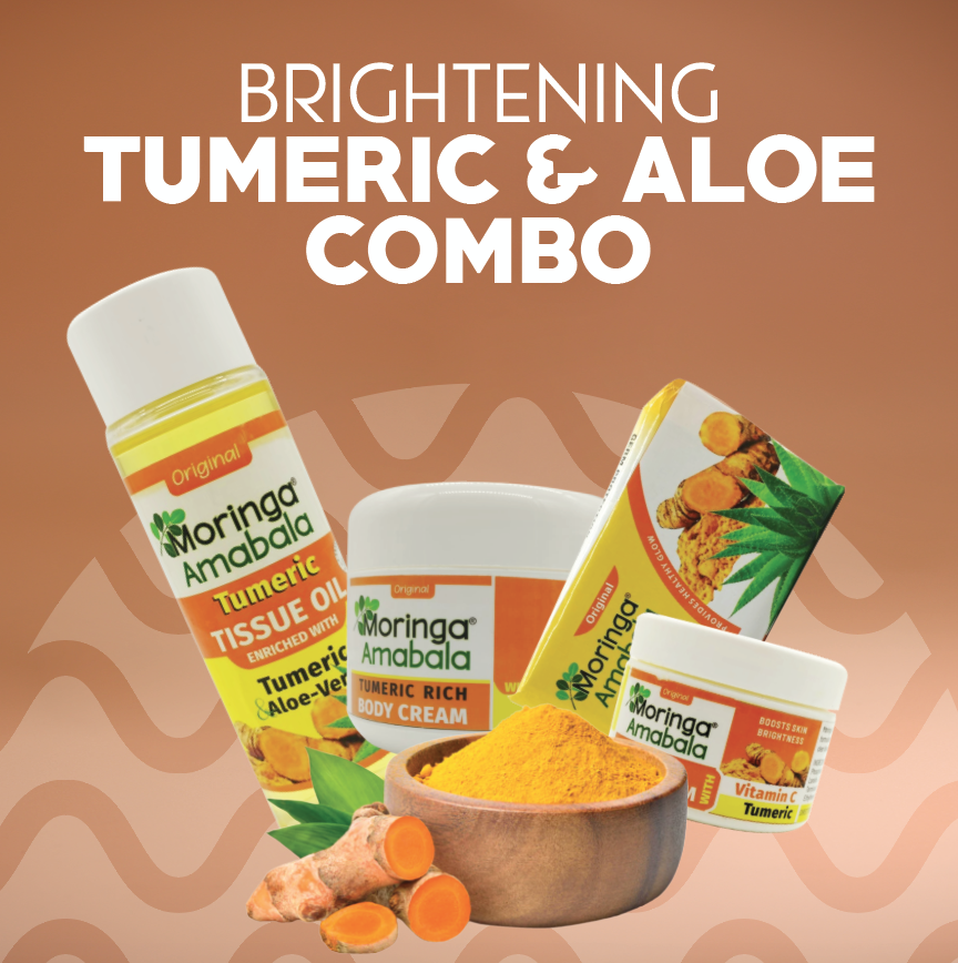 Experience the ultimate skincare transformation with our Turmeric & Aloe Vera Combo! This luxurious set includes a soap, tissue oil, body cream, and face cream—all infused with the natural power of turmeric and aloe vera to brighten your skin, enhance your glow, fade dark spots, and reduce the appearance of stretch marks. Get all this for just R300, with free delivery included. Pamper your skin and let your natural beauty shine.